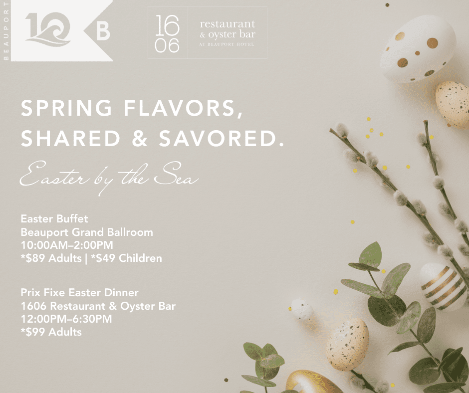 . 1606 Restaurant & Oyster Bar will offer a special Easter Prix Fixe menu, thoughtfully prepared and served with panoramic waterfront views — an elegant way to enjoy the holiday by the sea. Spend Easter surrounded by harbor views, seasonal flavors, and those who matter most. View menu here. 12:00PM–6:30PM. *$99 Adults