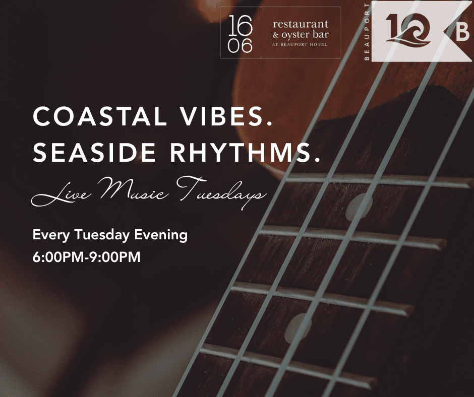 Tuesday night’s just found their rhythm. Every Tuesday Evening, from 6:00PM-9:00PM, 1606 Restaurant & Oyster Bar fills with the sounds of local talent, perfectly paired with ocean views and seasonal cocktails. Set your week to a seaside beat at Beauport Hotel—whether you’re meeting friends or savoring a solo escape, let the rhythm of the coast carry you into the night. Plan an evening with dinner reservations, or make it a midweek getaway with an overnight stay by the sea.
